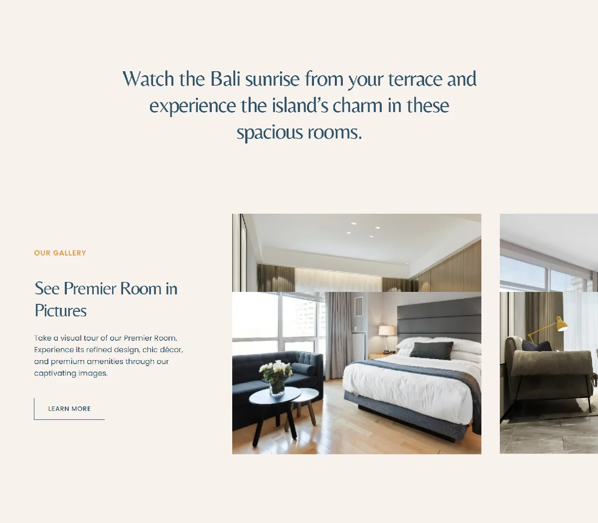 Take a visual tour of our Premier Room. Experience its refined design, chic décor, and premium amenities through our captivating images.