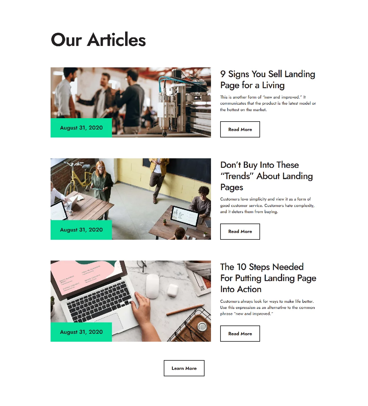 August 31, 2020 The 10 Steps Needed For Putting Landing Page Into Action Customers always look for ways to make life better. Use this expression as an alternative to the common phrase “new and improved.” Read More