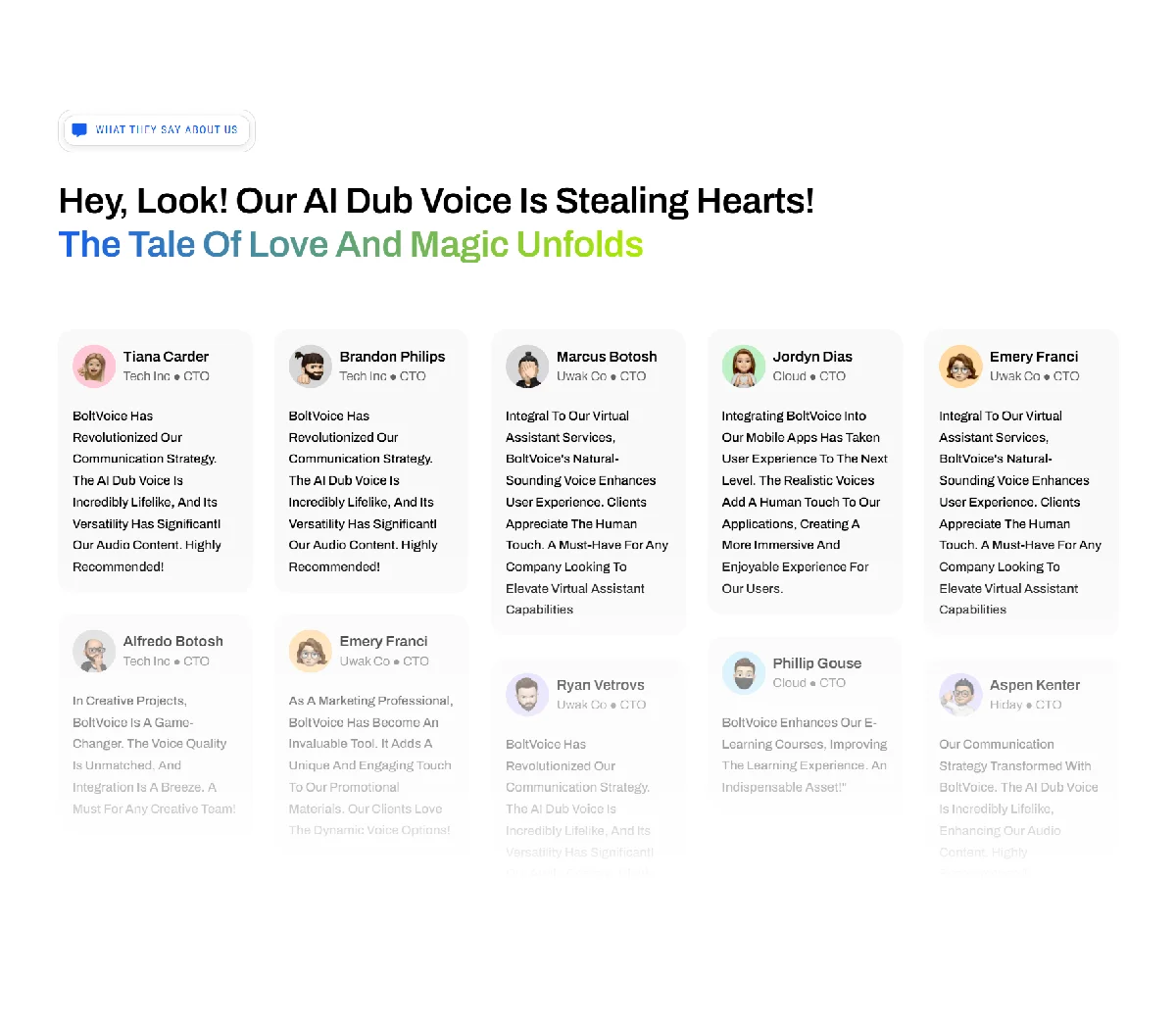 As a marketing professional, BoltVoice has become an invaluable tool. It adds a unique and engaging touch to our promotional materials. Our clients love the dynamic voice options!